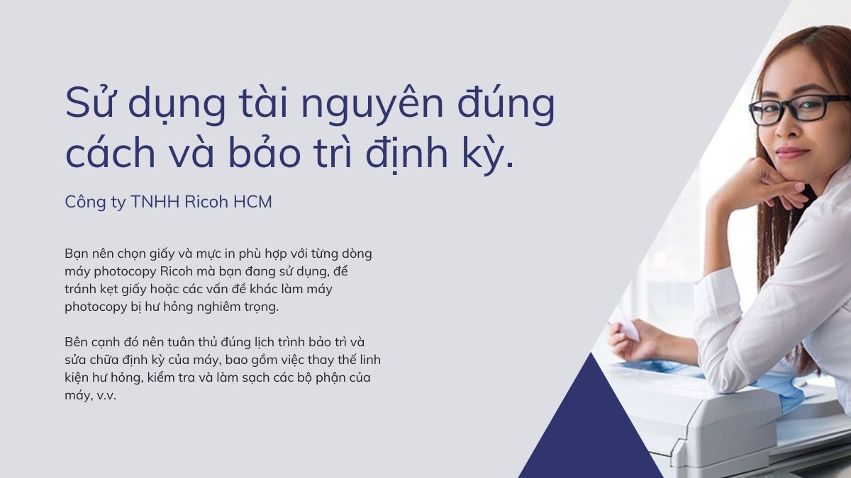 Vệc thuê máy photocopy là một giải pháp tối ưu để tiết kiệm chi phí và nâng cao hiệu quả làm việc của doanh nghiệp. Tuy nhiên, để giữ cho máy hoạt động ổn định và tránh tình trạng hư hỏng, bạn cần tuân thủ đúng quy trình sử dụng và bảo trì máy. Điều này bao gồm việc đặt máy ở nơi thoáng mát, tránh ánh nắng trực tiếp và ẩm ướt, sử dụng giấy in chất lượng cao và đảm bảo an toàn khi sử dụng máy.