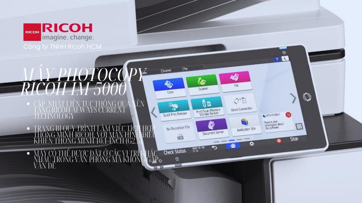Ngoài ra, IM 5000 còn được trang bị quy trình làm việc tích hợp thông minh RICOH, với màn hình điều khiển thông minh 10.1-inch (G2.5), cho phép người dùng thực hiện các hoạt động một cách dễ dàng, nhanh chóng và chính xác.