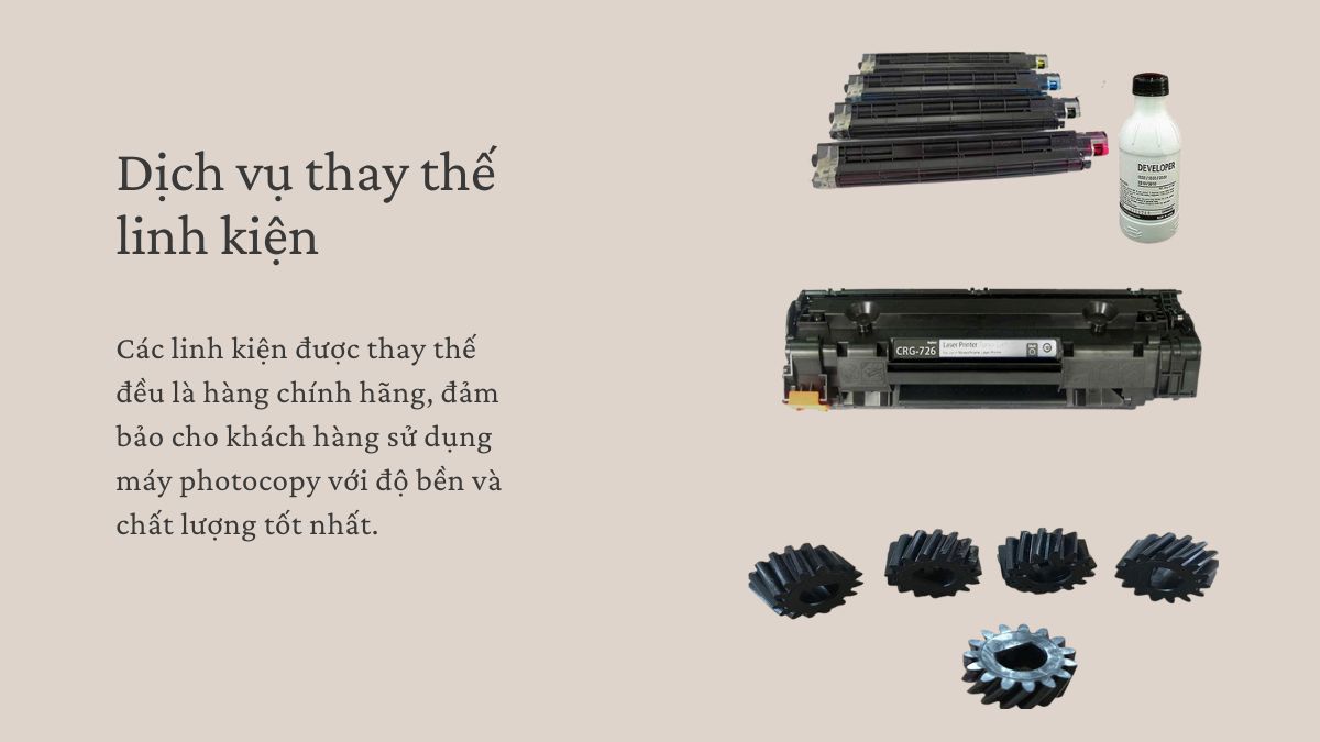 Nếu máy photocopy của khách hàng bị hỏng hoặc có linh kiện cần được thay thế, đội ngũ kỹ thuật viên của Ricoh HCM sẽ có mặt trong thời gian ngắn nhất để thay thế linh kiện cho khách hàng. Các linh kiện được thay thế đều là hàng chính hãng, đảm bảo cho khách hàng sử dụng máy photocopy với độ bền và chất lượng tốt nhất.