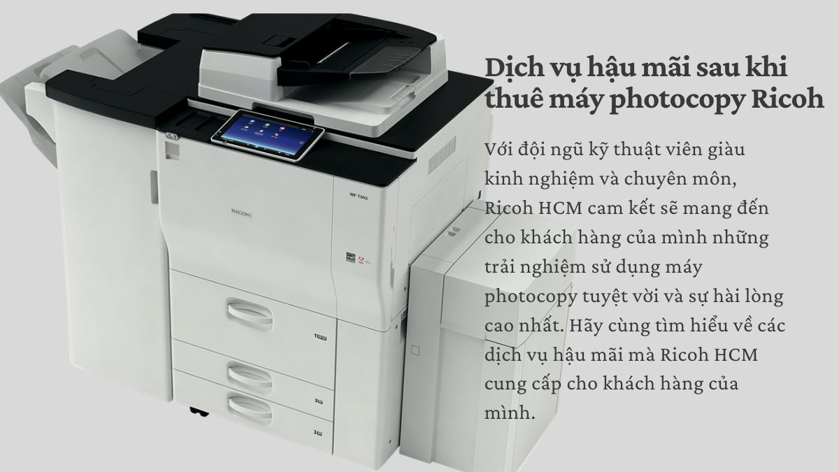 Trong thời đại công nghệ số hiện nay, máy photocopy là một trong những thiết bị cần thiết cho mọi doanh nghiệp và công ty. Với việc thuê máy photocopy Ricoh từ công ty TNHH Ricoh HCM, khách hàng sẽ không chỉ nhận được sản phẩm chất lượng cao mà còn được hỗ trợ và chăm sóc sau khi mua hàng tuyệt vời nhất.