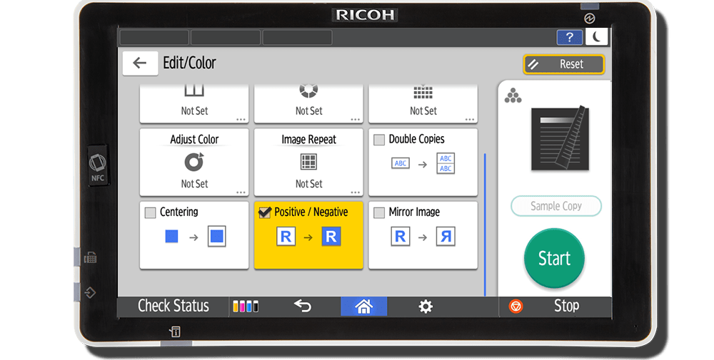Quản lý bản in, giấy in và mực in: Máy photocopy Ricoh cung cấp tính năng quản lý số lượng bản in, giấy và mực in, cho phép bạn theo dõi sử dụng và điều chỉnh cài đặt để tối ưu hiệu quả. Bạn có thể xem số lần in, số lần scan, số lần gửi fax và thời gian sử dụng của máy trên bảng điều khiển. Điều này giúp cho bạn biết được giấy, mực và số lượng bản in, mà máy đang được sử dụng nhiều nhất, qua đó bạn có thể điều chỉnh cài đặt để tối ưu hiệu suất và tiết kiệm chi phí sử dụng.