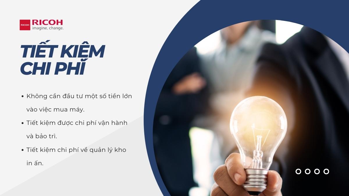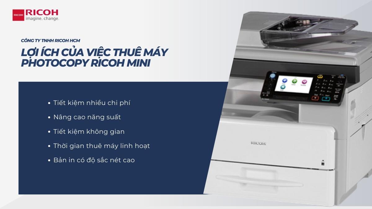 Thuê máy photocopy Ricoh mini là một giải pháp tiết kiệm chi phí tốt cho các doanh nghiệp và cá nhân. Bằng cách thuê máy photocopy Ricoh mini, các doanh nghiệp và cá nhân có thể tiết kiệm được chi phí đầu tư ban đầu, chi phí vận hành và bảo trì, cũng như chi phí quản lý kho in ấn