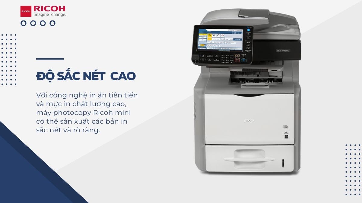 Một lợi ích quan trọng khác của việc thuê máy photocopy Ricoh mini là đảm bảo chất lượng in ấn. Với công nghệ in ấn tiên tiến và mực in chất lượng cao, máy photocopy Ricoh mini có thể sản xuất các bản in sắc nét và rõ ràng. Điều này giúp các doanh nghiệp và cá nhân đảm bảo rằng tài liệu của họ được in ấn với chất lượng tốt nhất.