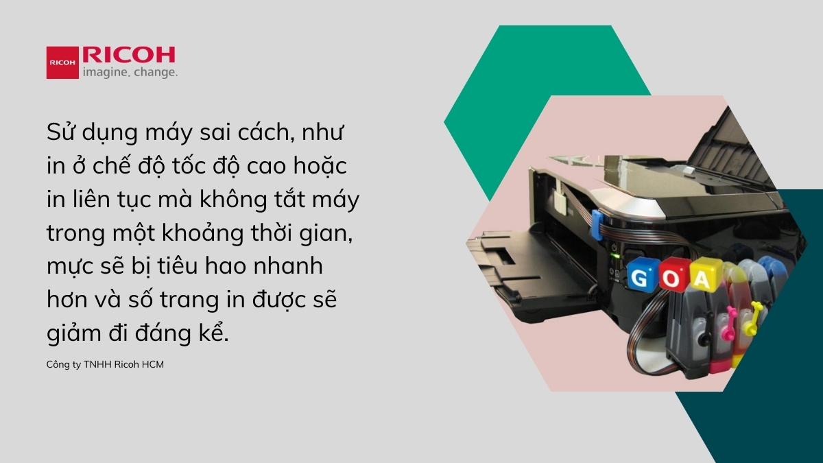Cách sử dụng máy photocopy của bạn cũng ảnh hưởng đến số trang in được của mực. Nếu bạn sử dụng máy đúng cách và theo hướng dẫn của nhà sản xuất, mực sẽ được sử dụng một cách hiệu quả nhất. Nếu bạn sử dụng máy sai cách, như in ở chế độ tốc độ cao hoặc in liên tục mà không tắt máy trong một khoảng thời gian, mực sẽ bị tiêu hao nhanh hơn và số trang in được sẽ giảm đi đáng kể.