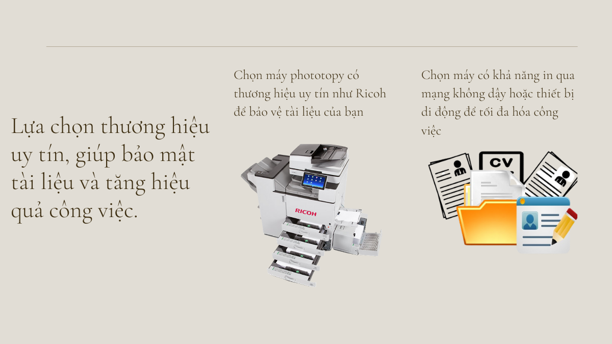 Bài viết sẽ bao gồm các tiêu chí quan trọng cần lưu ý khi chọn máy photocopy Ricoh, bao gồm kích thước, tốc độ in, độ phân giải, tính năng kết nối, tính bảo mật, dịch vụ hỗ trợ và chi phí sử dụng. Mỗi tiêu chí sẽ được phân tích kỹ lưỡng để giúp bạn có cái nhìn tổng quan và có thể chọn được chiếc máy photocopy Ricoh phù hợp nhất với nhu cầu sử dụng của bạn.
